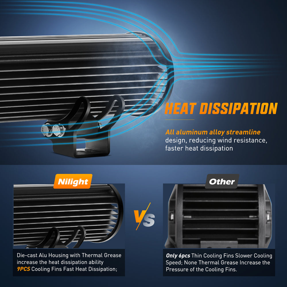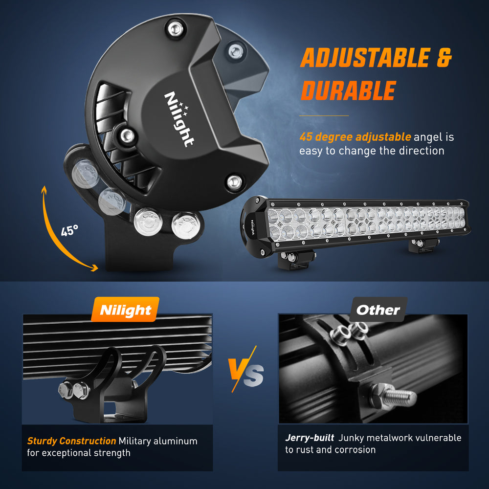 - Adjustable Mounting Bracket: The light bar can be adjusted to about 45 degrees, which makes changing direction of light beam easier