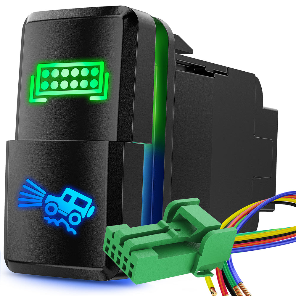 LED Light Bar & Off-Road Lights Dual Push Button Switch 12V ON Off Switches with Connector Wire Kit 1.54Inch x 0.83Inch Replacement for Toyota Tacoma Tundra 4Runner FJ Cruiser Hilux Fortuner
