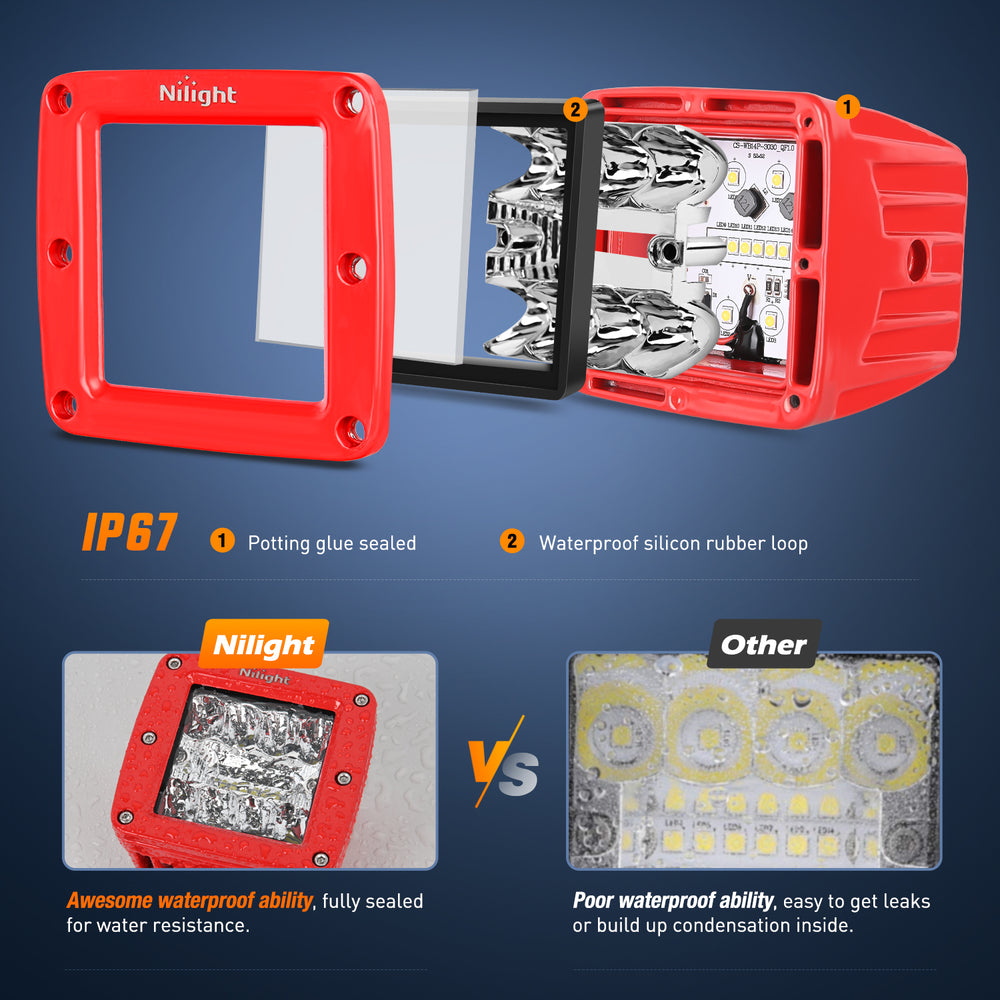 - Package Include: 2PCS 3 Inch LED Pods, 1 x Wiring Harness Kit
