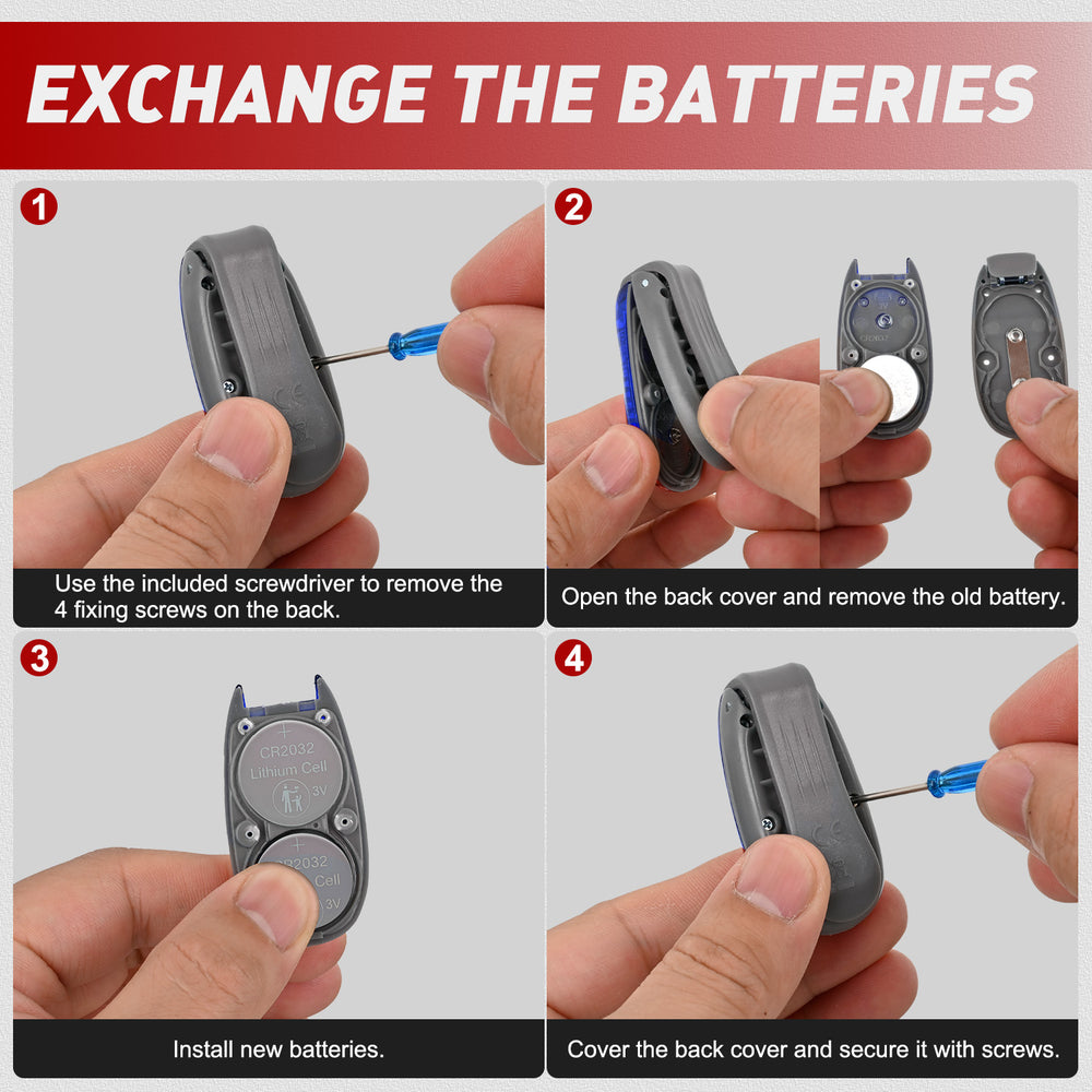 - Long Lifespan: Each light is equipped with 2pcs CR2032 batteries, which are durable and have a long service life. To replace the battery, use the included screwdriver to remove the back cover, replace the battery with a new one, and then reinstall the back cover