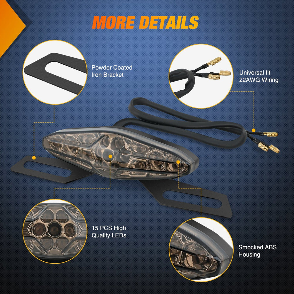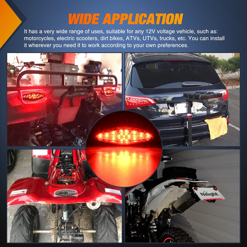 - Multifunctional: The tail light integrated with the running light and brake light, which shows highly efficient warning function, low consumption, and energy saving, also enhances the look of your motorcycle to a more modern, stylish, and functional