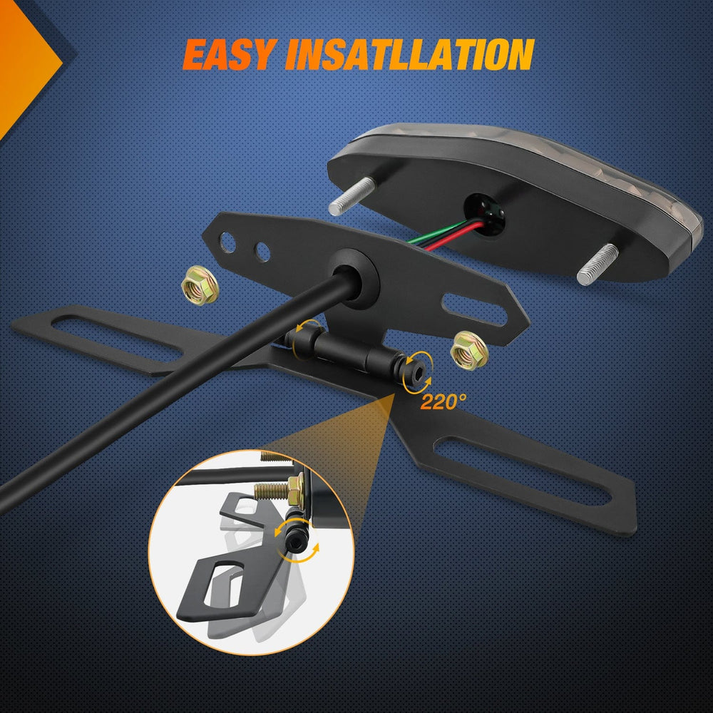 Motorcycle Tail Lights LED Brake Running Light with License Plate Bracket Dirt Bike Rear Lighting Compatible with Honda Yamaha Kawasaki Suzuki Chopper Turing Cruiser, Red