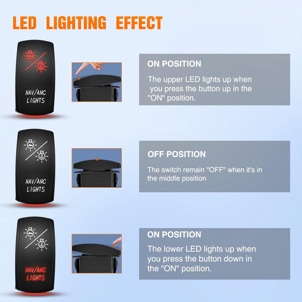 NAV/ANC Rocker Switch 7Pin Navigation Anchor Lights Toggle On Off DPDT Laser Etched 12V 24V Jumper Wires for ARB Carling NARVA Style Marine Boat Ship Vessel