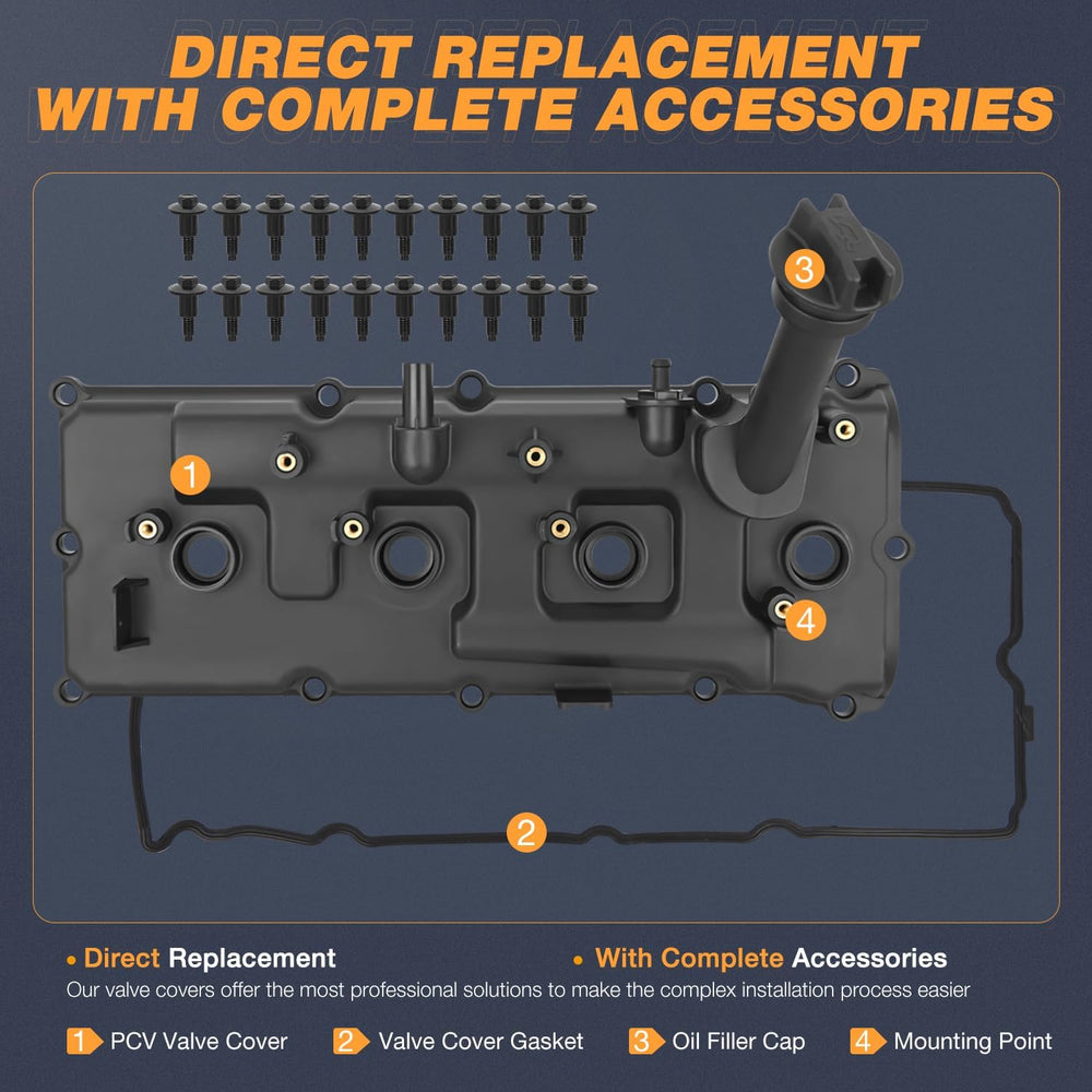 Pair Engine Valve Cover with Gasket for Nissan NV2500 NV3500 2012-2017 Pathfinder 2004 Armada 2005-2015, Infiniti QX56 2004-2010 Valve Cover, V8 5.6L Engine