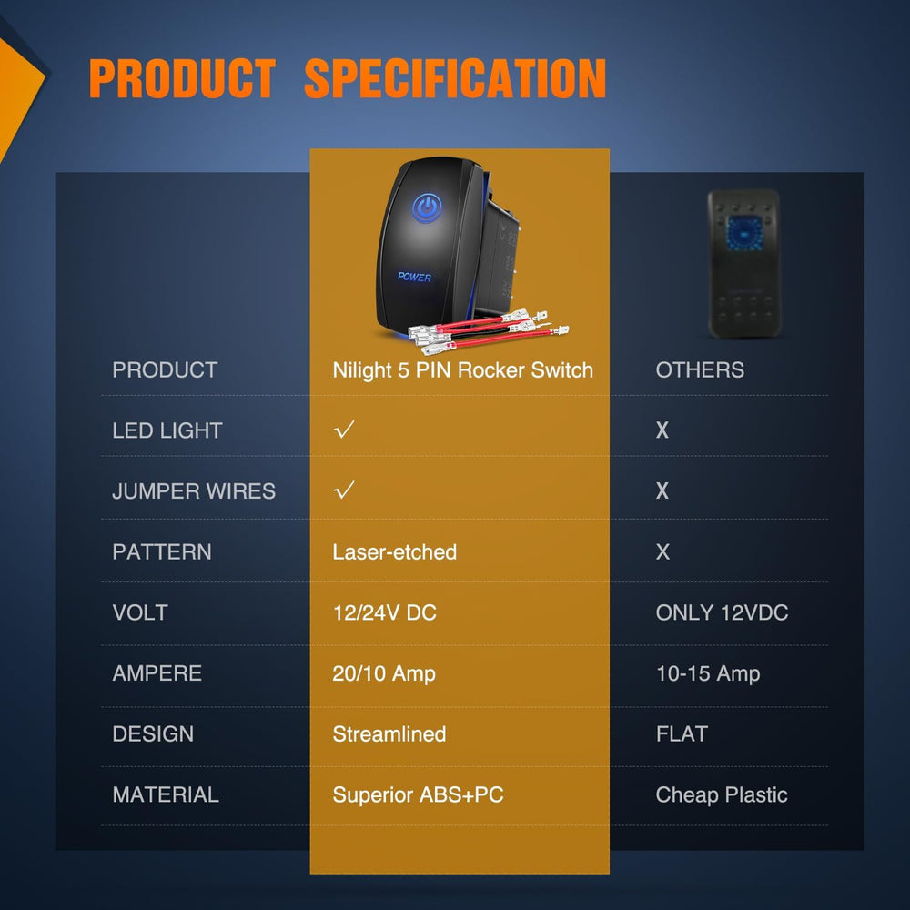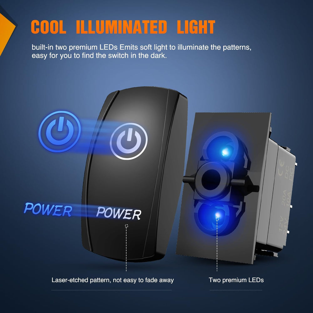 Power Rocker Switch Led Light Bar 5 Pin Laser On Off SPST Switches 20A/12V 10A/24V Blue with Jumper Wires Set for Cars Trucks Boats ATVs UTVs RVs