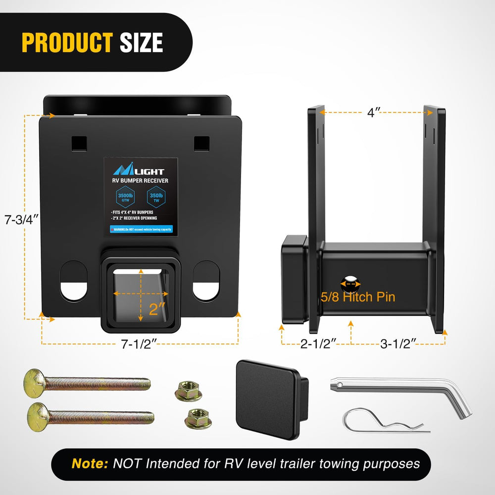 - Package Included: Hitch Receiver & Rubber Cap & 5/8" Hitch Pin and Clip & All Mounting Accessories