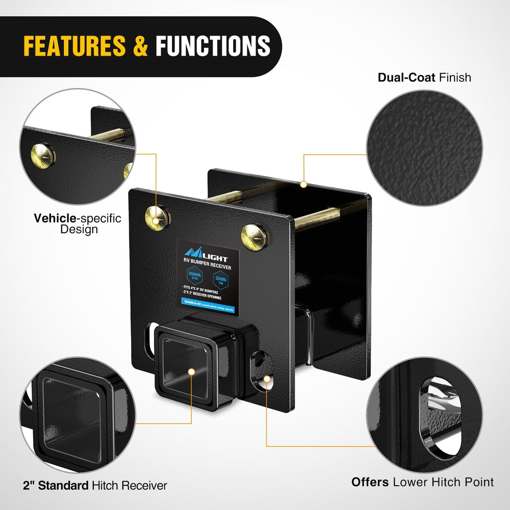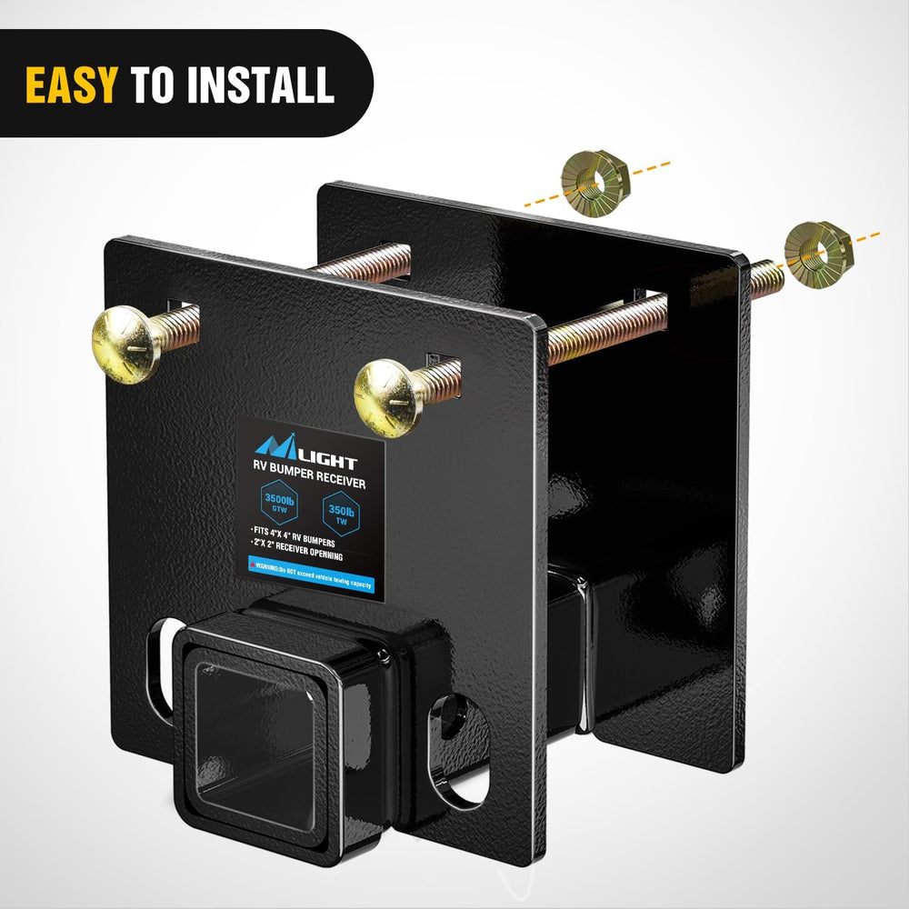 - Easy To Install: It is specifically designed to fit most 4" x 4" Square Bumpers, and can even be mounted upside down. No need for complicated welding to make the Nilight Hitch Receiver work. You can hook it up to a bicycle rack, RV tire rack, cargo rack or other accessories. Simply install it on the bumper and you are good to go.