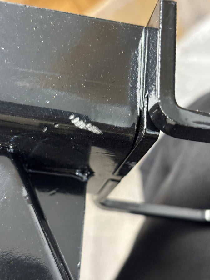 This spare tire bracket is reinforced with an upgraded triangular structure welded together, with a sturdy rectangular behind plate.
