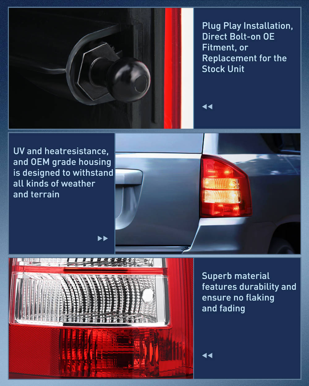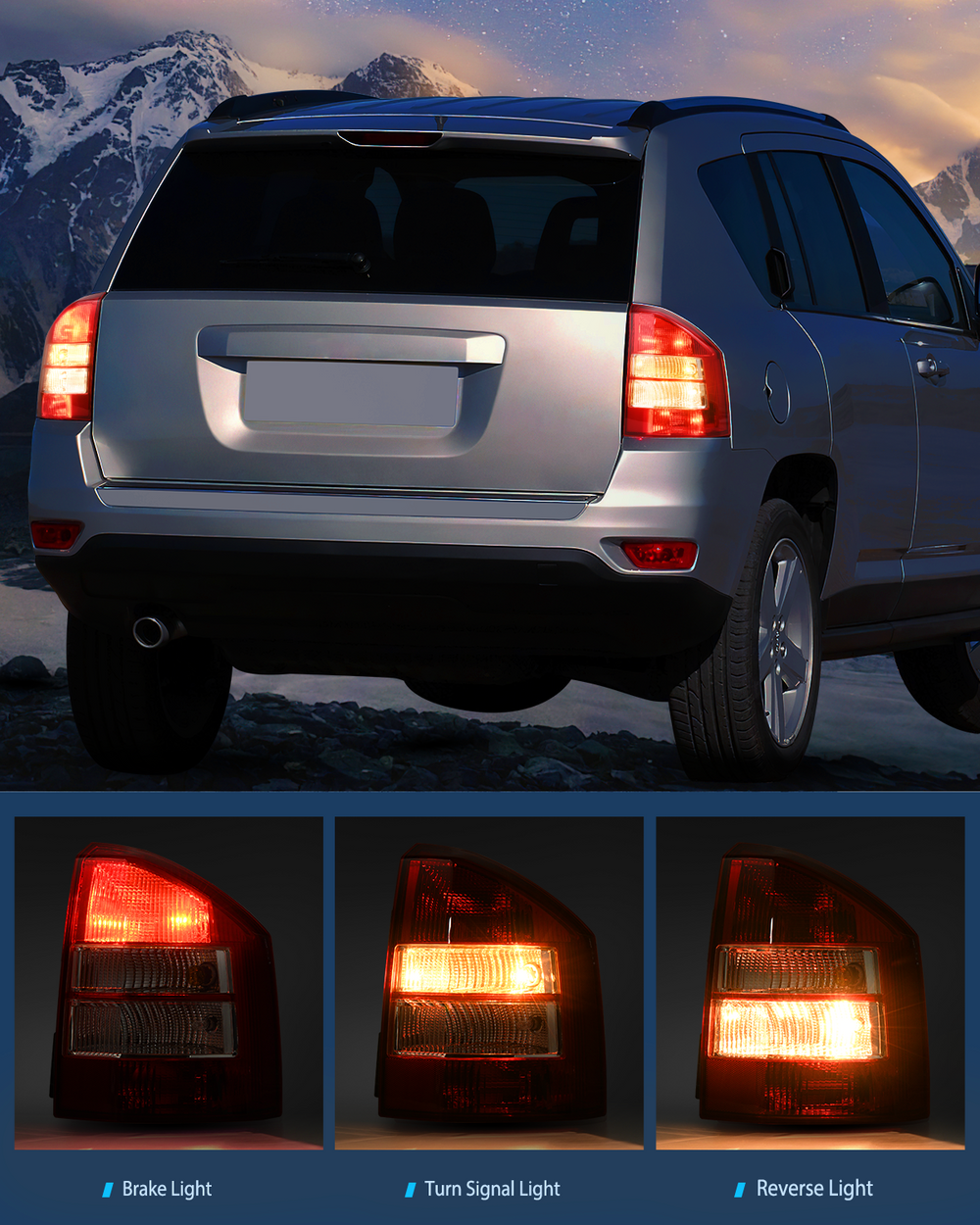 - Compatibility: The taillight assemblies are compatible with 2007 2008 2009 2010 Jeep Compass. For oem: 5303878AD,CH2801169. Please confirm the vehicle fitment before ordering.