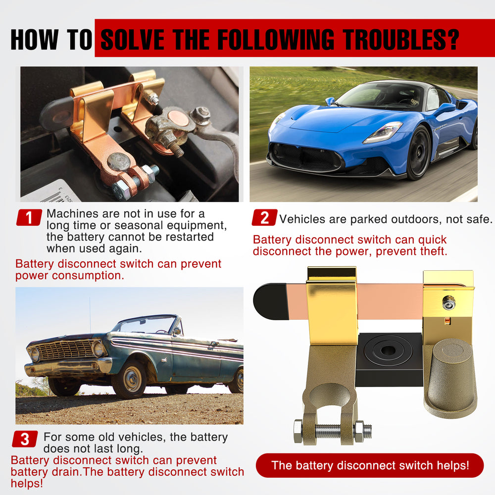- Ultimate Protection: This battery cut-off switch is used to isolate the battery and protect the electrical system, eliminating any power consumption from the battery when the vehicle is not in use, and blocking unnecessary battery consumption.