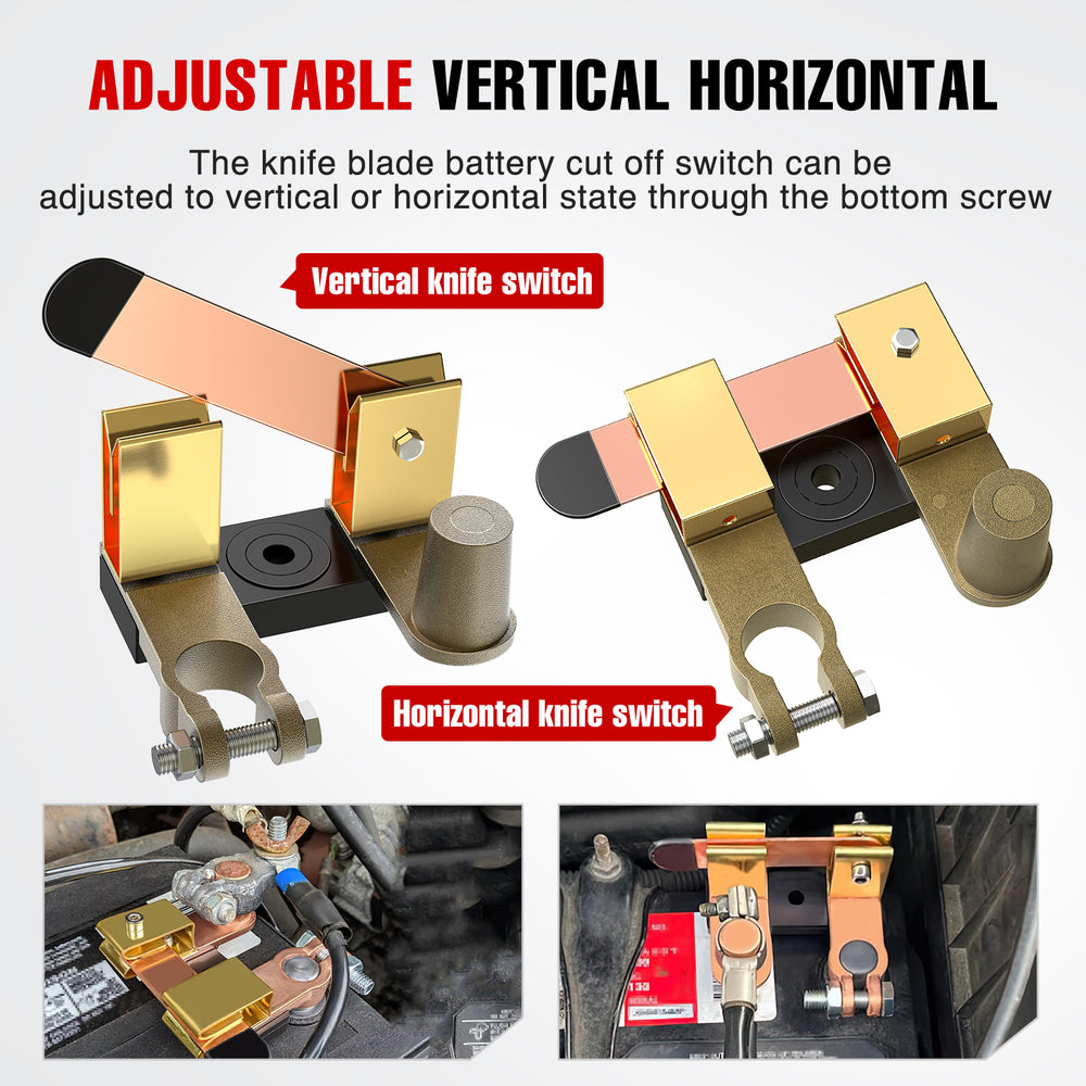 - Heavy Duty Structure: Made of Heavy-duty solid brass that is rust and corrosion-resistant, this vertical blade type knife switch can be installed in seconds and operation is a breeze, durable, and safely disconnects your battery.