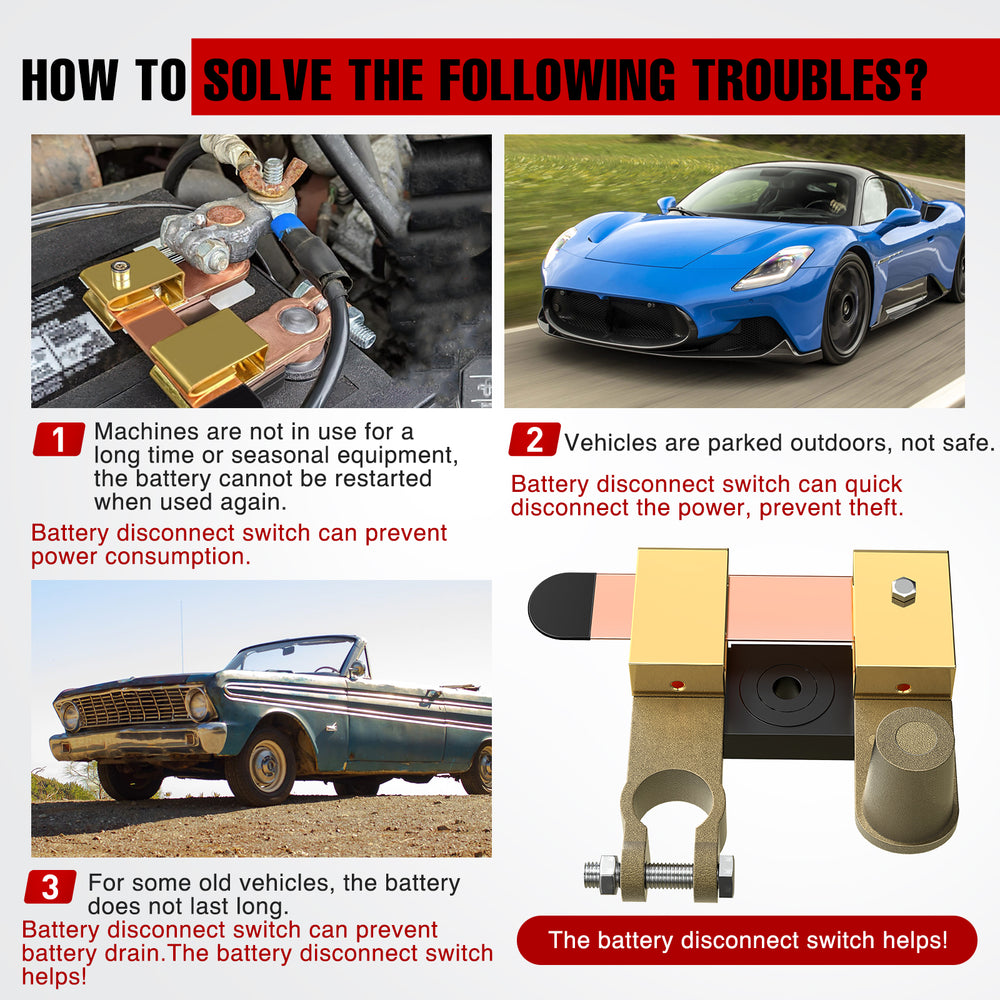 - Ultimate Protection: This battery cut-off switch is used to isolate the battery and protect the electrical system, eliminating any power consumption from the battery when the vehicle is not in use, and blocking unnecessary battery consumption.