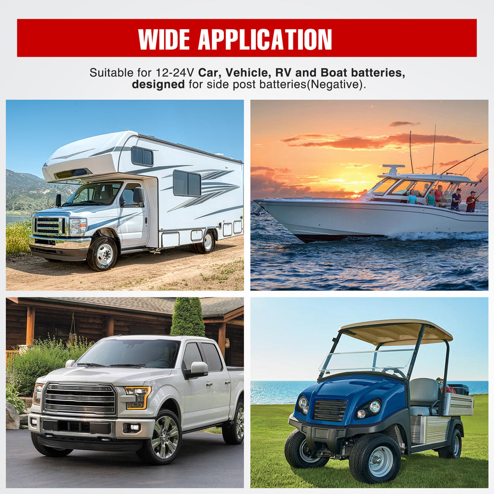 For Top or Side Post Batteries. Recommended To Mount On Negative Battery Post To Disconnect Ground Battery.