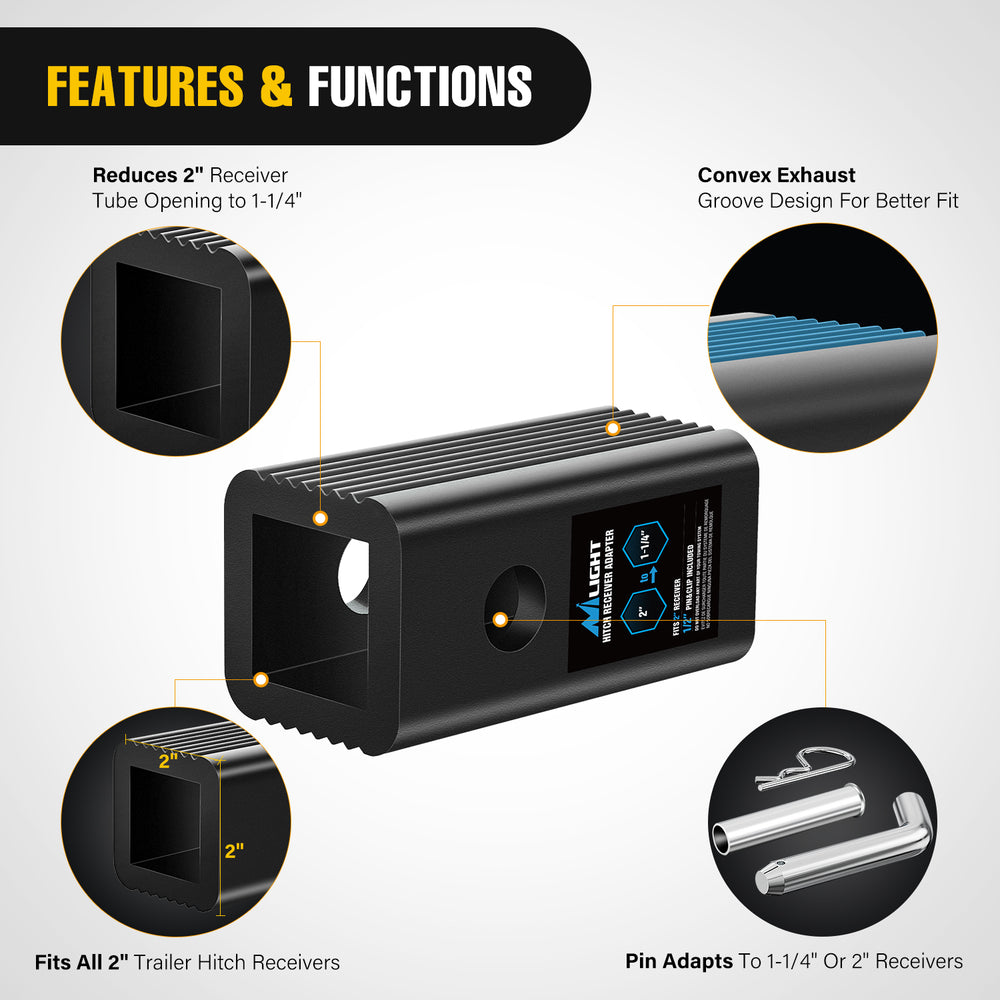 - Package Included: 2 to 1-1/4inch Hitch Adapter & 5/8 Hitch Pin and Clip