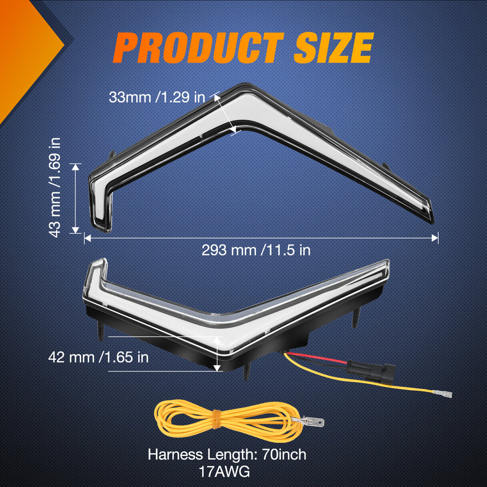 - Worth To Upgrade: Including turn signal lights and extended wire harnesses, are great upgrades. This accent light kit helps drivers to see potential hazards sooner, allowing more time to react, safer for your on-road driving journey but also more attractive