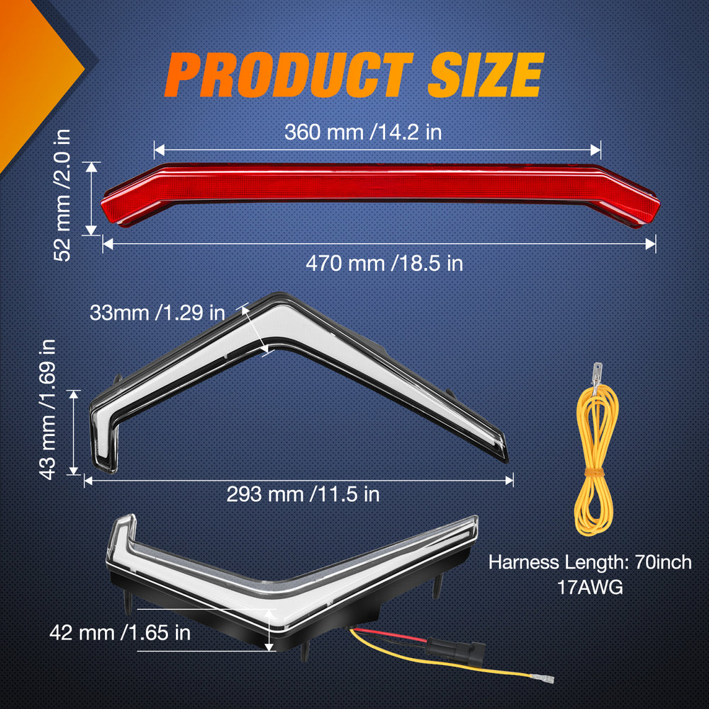 - Worth To Upgrade: Including turn signal lights and extended wire harnesses, are great upgrades. This accent light kit helps drivers to see potential hazards sooner, allowing more time to react, safer for your on-road driving journey but also more attractive